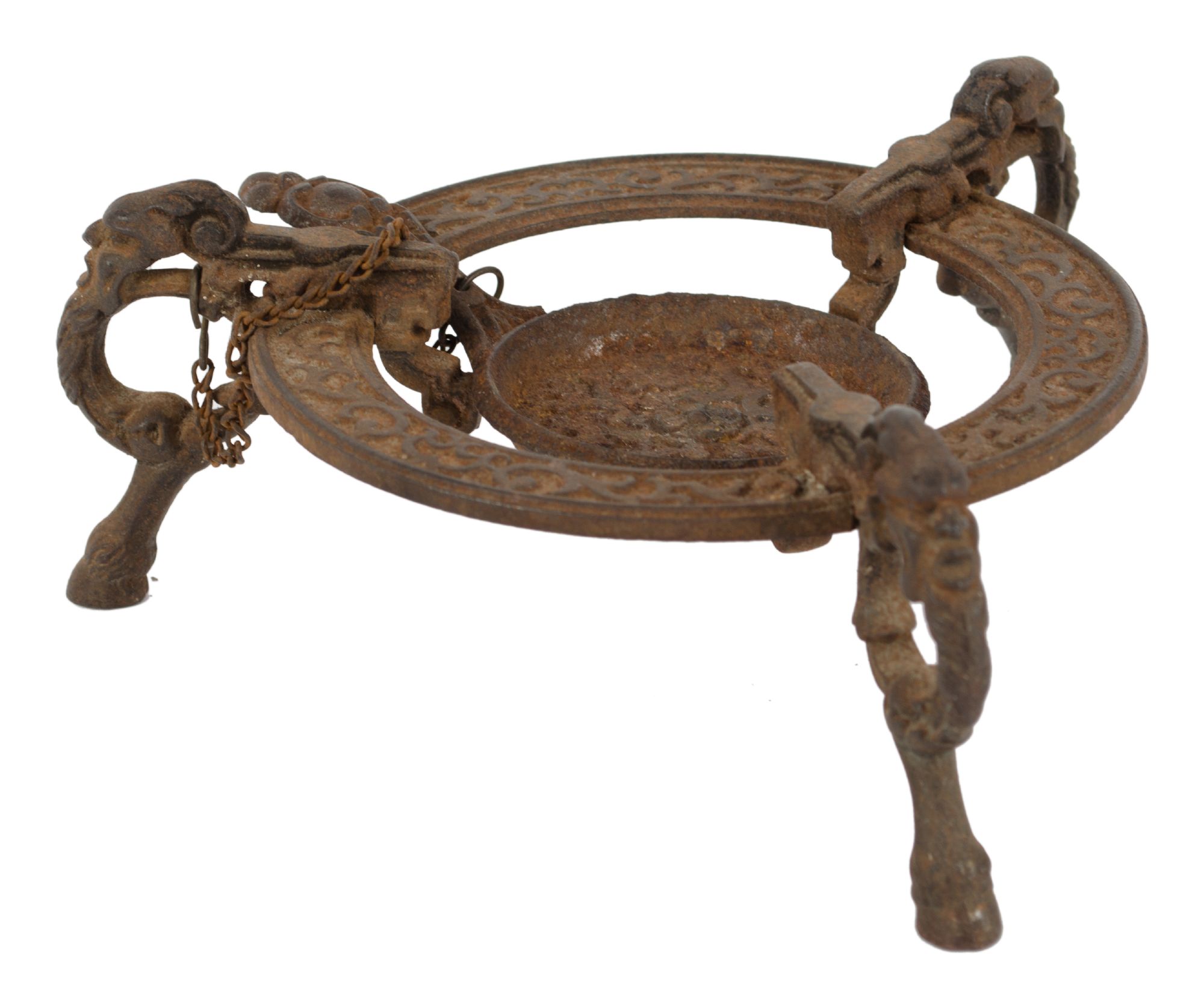 INCENSIERE in bronzo lavorato con piedini a forma di mascheroni e zampe equine. XIX secolo Misure: diametro cm 19 x h 8