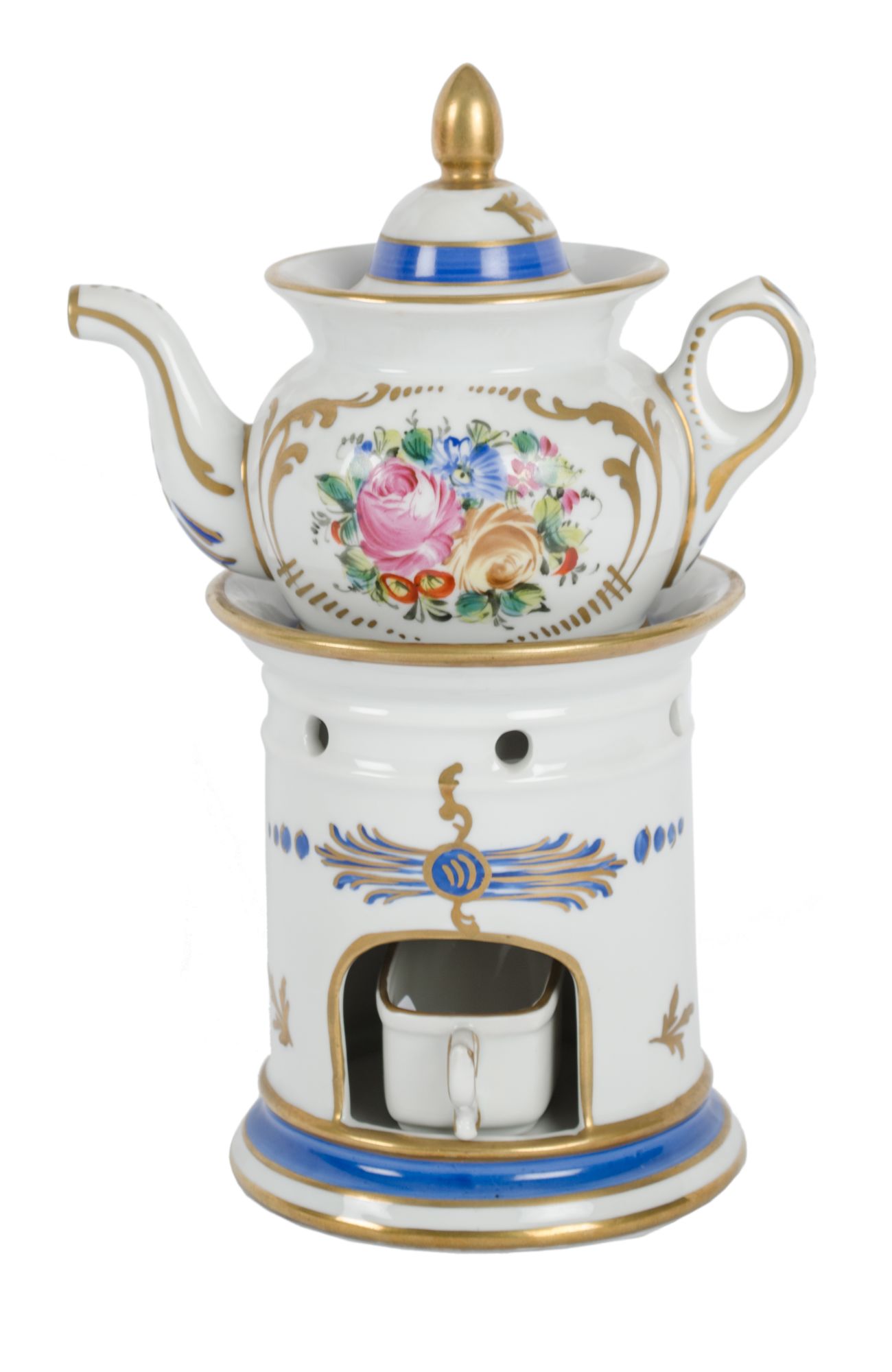 SAMOVAR in porcellana Limoges bianca decorata a motivo floreale. XX secolo Misure: h cm 25
