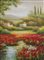 OLIO su tela "paesaggio campestre con case e fiori". XX secolo Misure: cm 120...