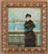 OLIO su tela "gentildonna sul lungo mare", firmato in basso a destra. XX secolo Misure: cm 52 x 42
