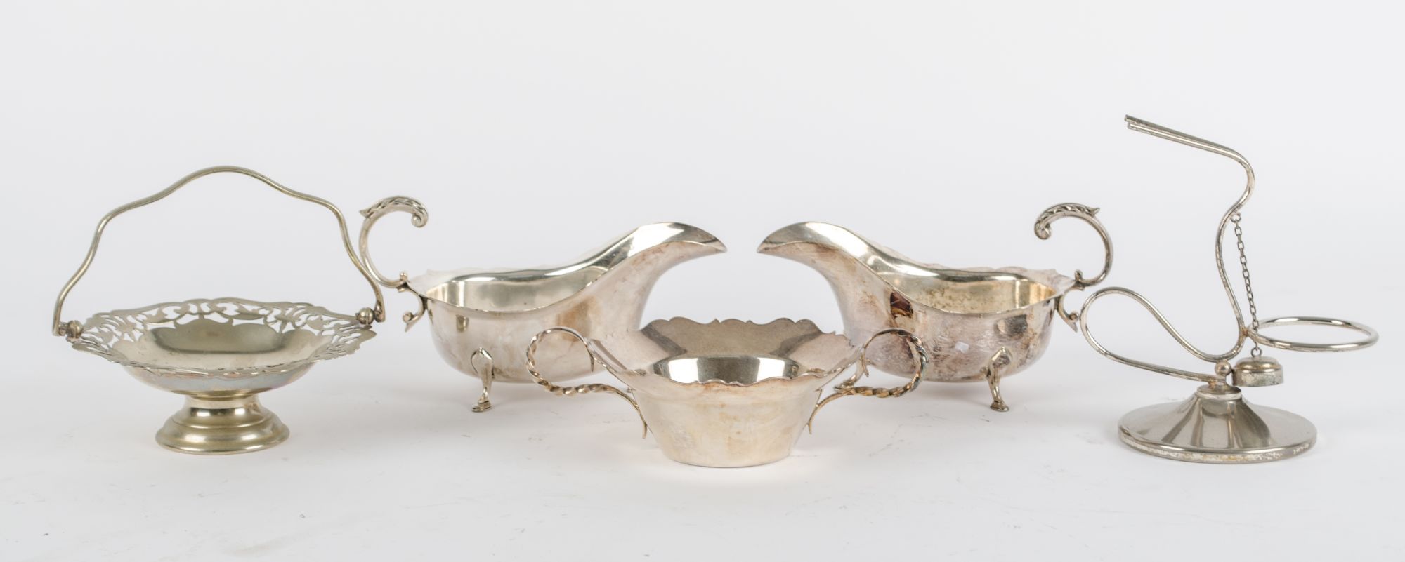 LOTTO composto da tre SALSIERE, CESTINO e da PORTA TAZZA in Sheffield. Inghilterra XX secolo Misure: varie