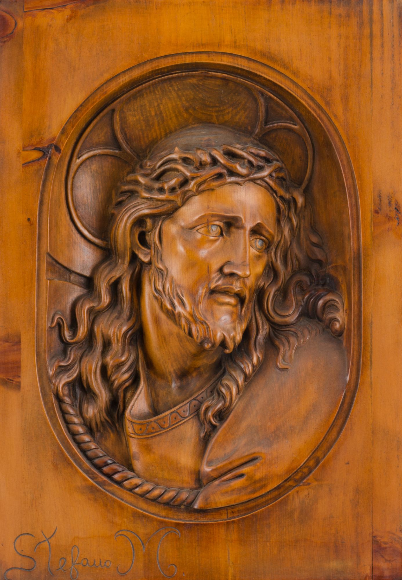 M. STAGNO BASSORILIEVO in legno "volto di Cristo", firmato in basso a sinistra. XX secolo Misure: cm 67 x 46,5