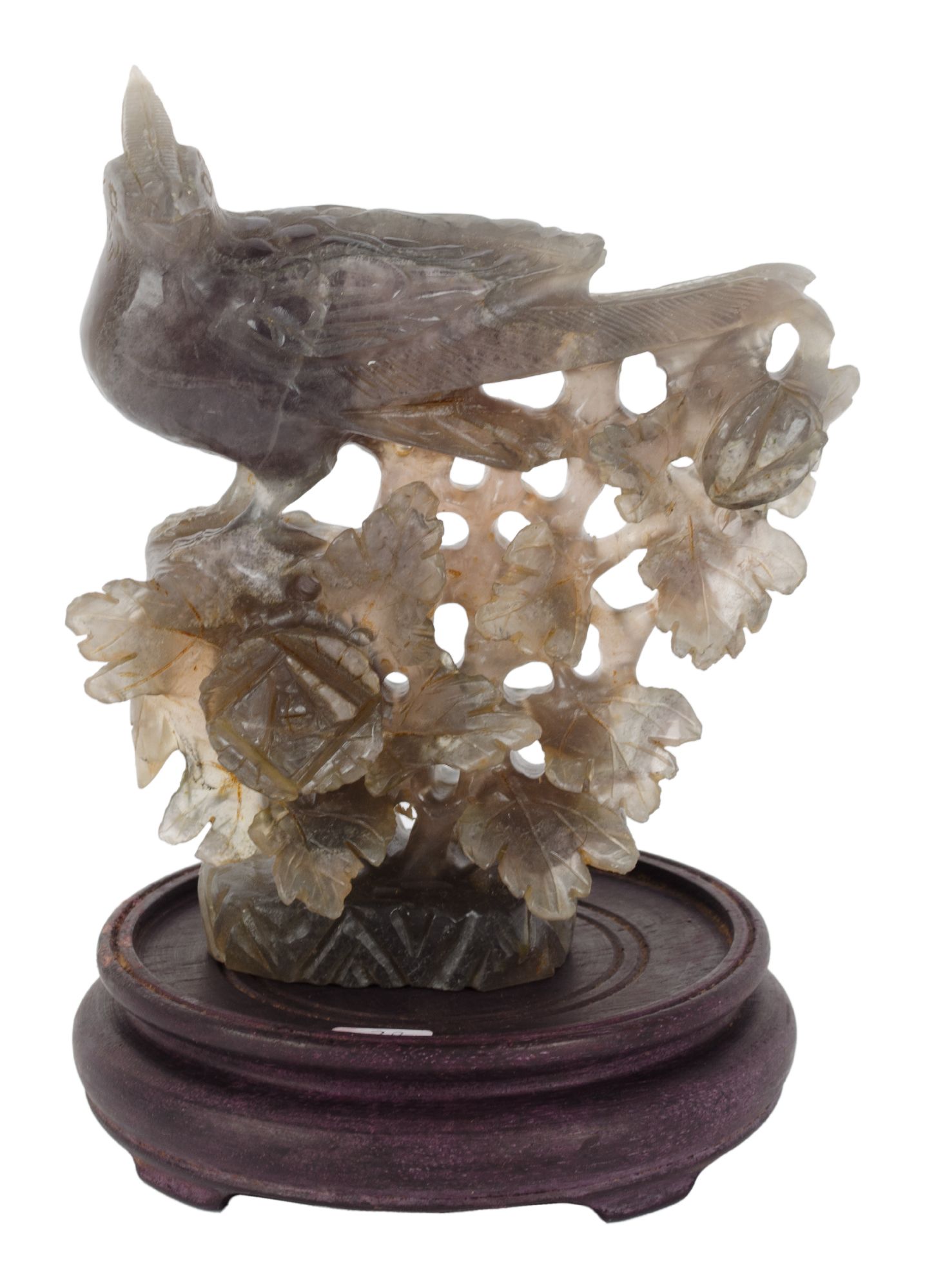 SCULTURA in serpentinite raffigurante "volatile", base in legno. Cina XX secolo Misure: h cm 18,5