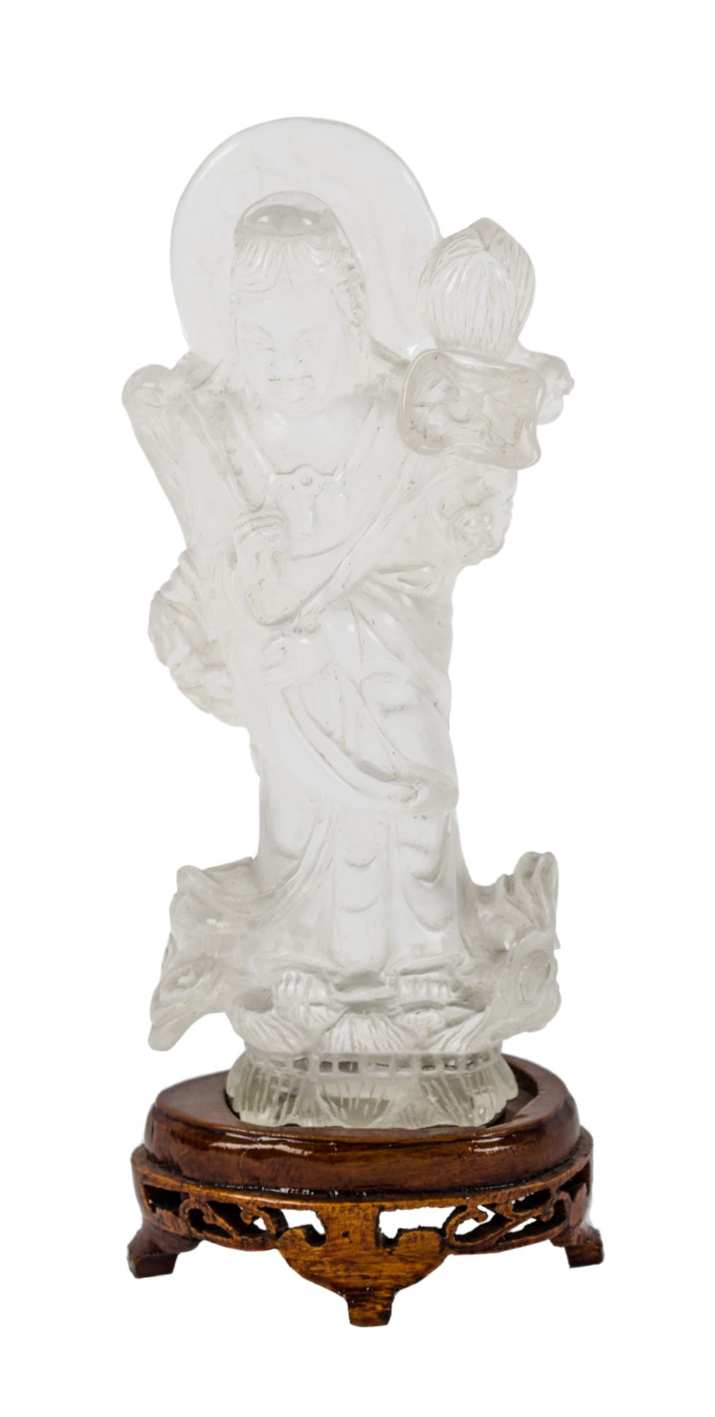 SCULTURA in cristallo di Rocca raffigurante "divinita'", base in legno. Oriente XX secolo Misure: h cm 17