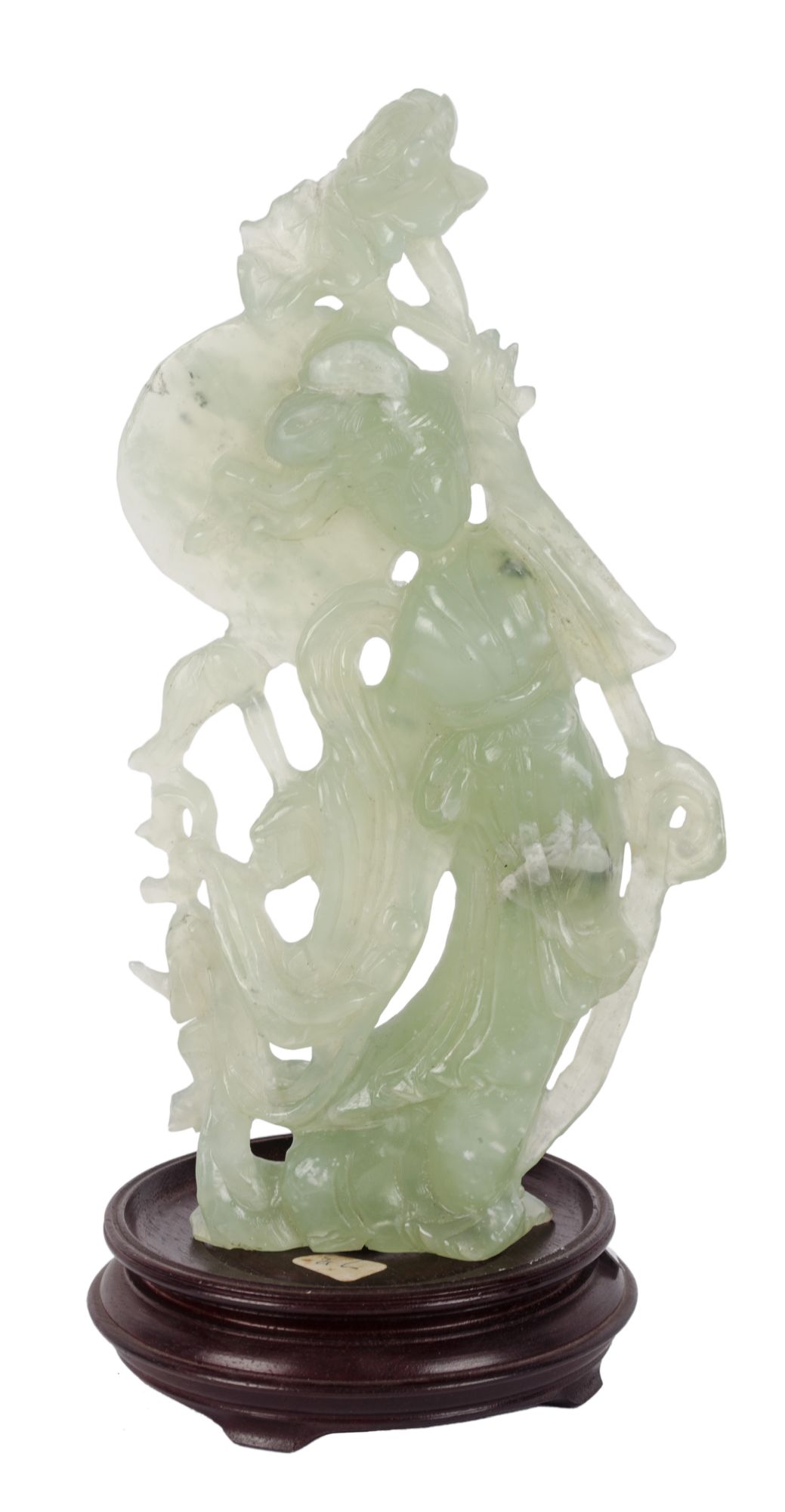 Lotto 638 | SCULTURA in giada raffigurante "geisha", base in legno. Cina XX secolo...