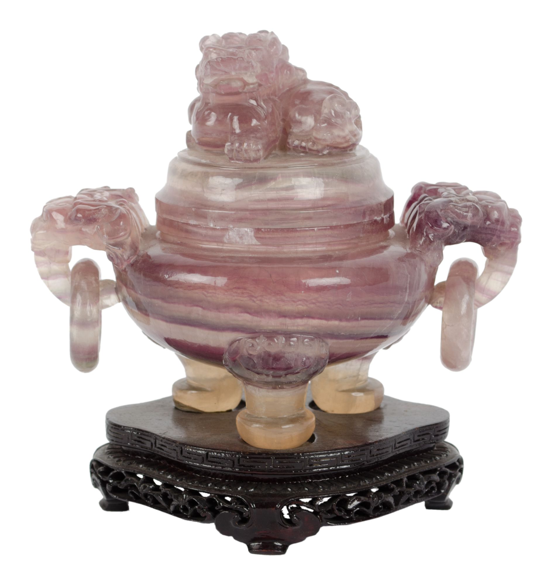 POTICHE in ametista con base in legno. Cina XX secolo Misure: h cm 15