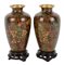 COPPIA VASI Cloisonnet con basi in legno ebanizzato. Cina XX secolo Misure: h cm 21,5