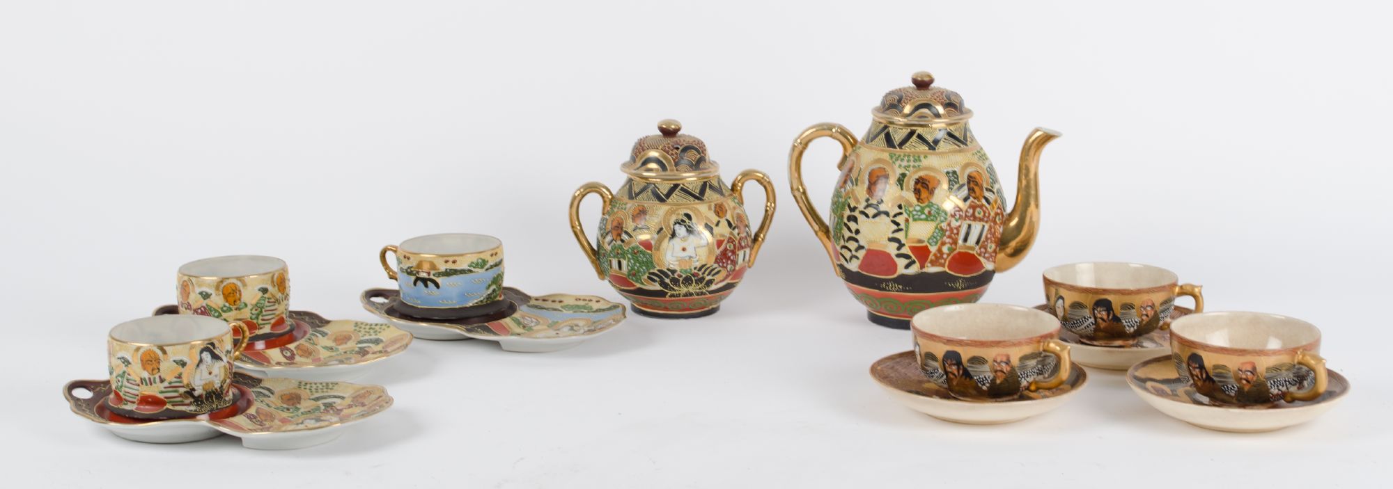 SERVIZIO da caffe' in porcellana decorata composto da CAFFETTIERA, ZUCCHERIERA e da sei TAZZE con piattini. Giappone XX secolo Misure: varie
