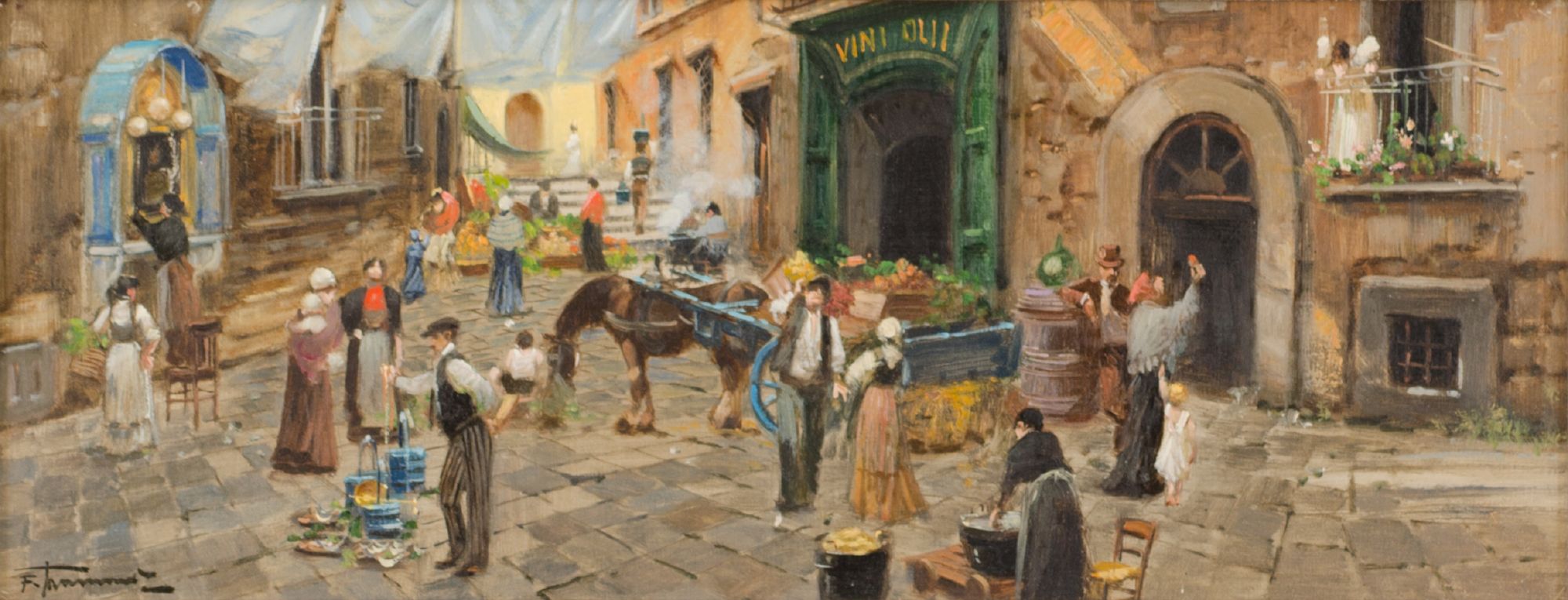 FRANCESCO TAMMARO (1939) OLIO su tavoletta "scorcio di Napoli", firmato in basso a sinistra e sul retro. Misure: cm 20 x 50