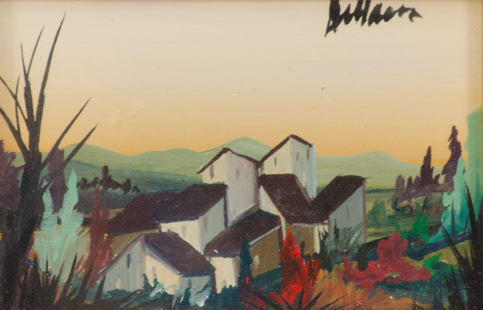 BELLANCA OLIO su faesite "caseggiato". XX secolo Misure: cm 10 x 15
