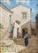 OLIO su tavoletta "cortile di Erice", firmato in basso a destra. Misure: cm 23 x 17