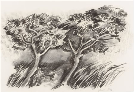GAETANO LO MANTO (Conegliano Veneto 1944) CARBONCINO su carta "il bacio". Misure: cm 46 x 76