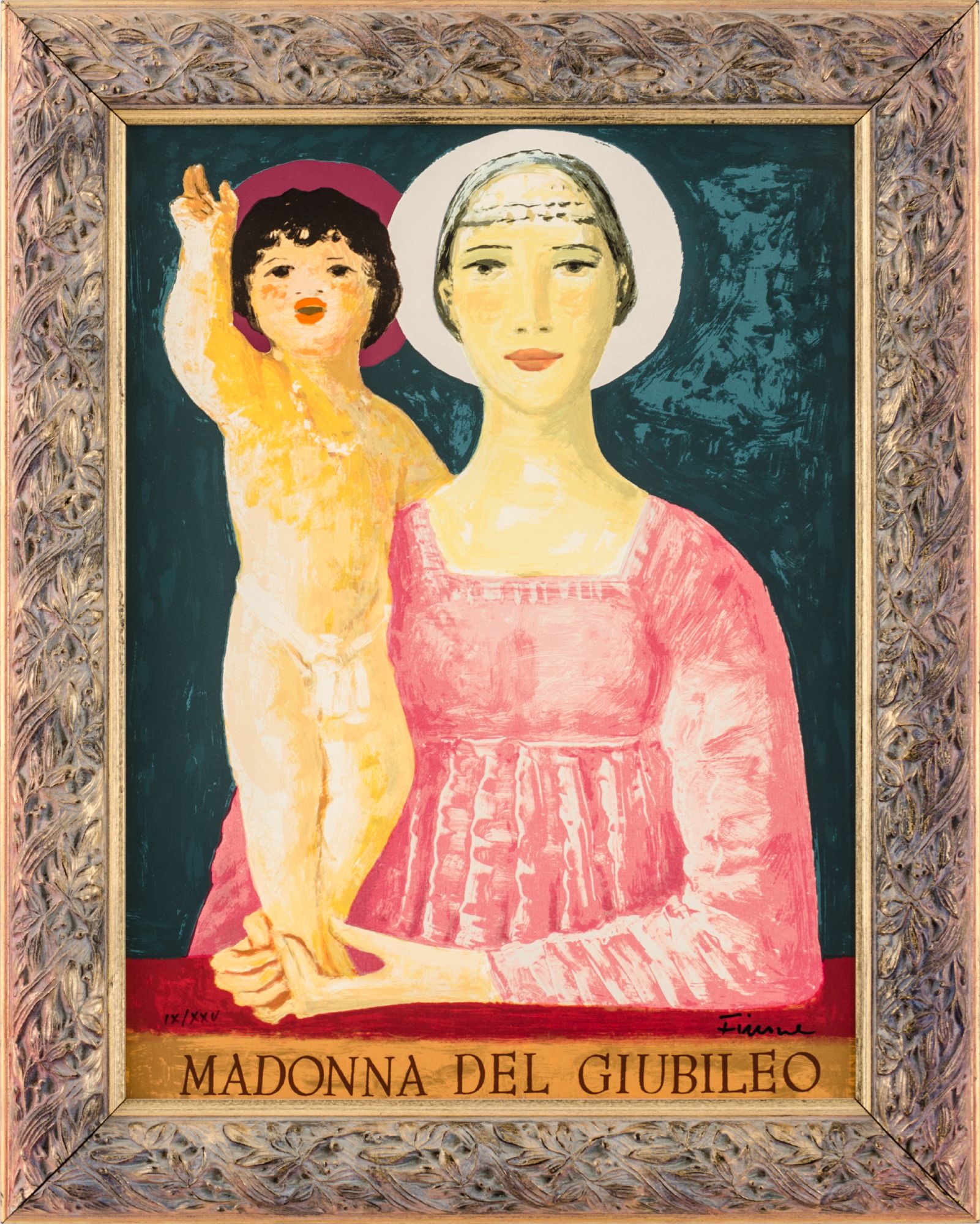 SALVATORE FIUME (Comiso (Rg) 1915 - Milano 1997) LITOGRAFIA a colori "Madonna del Giubileo", esemplare IX/XXV (con certificato di provenienza Sanzanobi). Misure: cm 71,5 x 54
