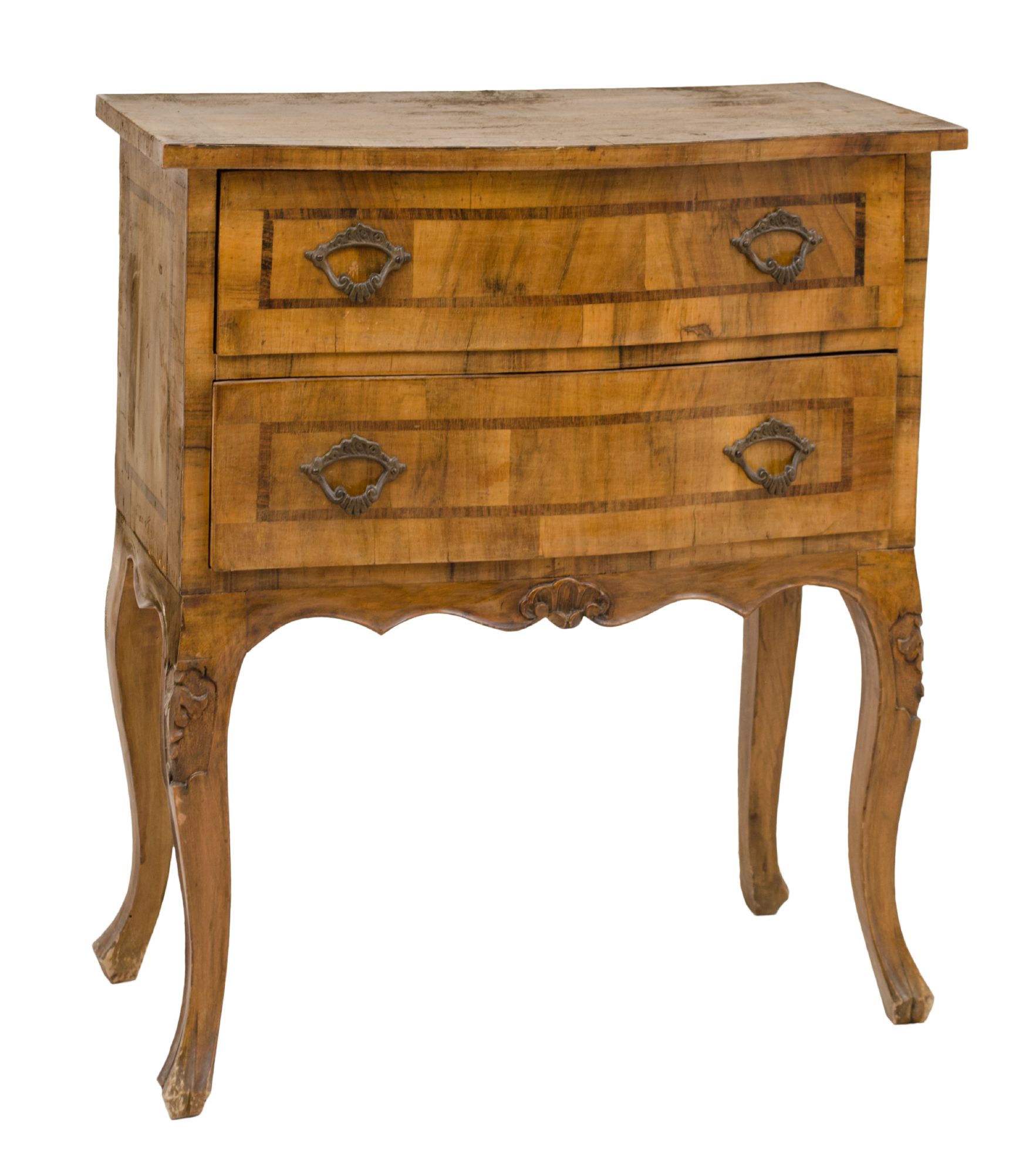 COMODINO a due cassetti in noce. Veneto XX secolo Misure: cm 60 x 29 x h 69,5