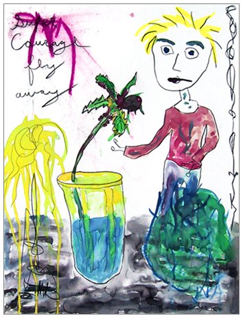 PAUL KOSTABI 1962 Super courage 2000 Olio e t.m. su cartoncino 51 x 38. Sul verso firma, titolo e data. Autentica dell’autore su foto. Pubbl.: “Paul Kostabi” cat. mostra a cura di Silvio Guarasci, Saletta Viviani, Pisa, 1 – 31 Dicembre 2007, p.28.