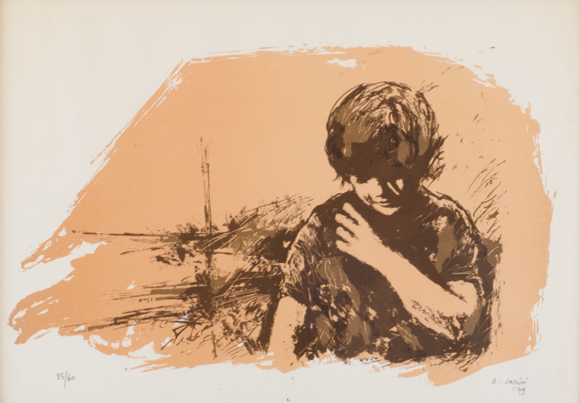 ANDREA CARISI (Forli' 1934) LITOGRAFIA "bambino", esemplare 25/60. Misure: cm 48,5 x 68,5