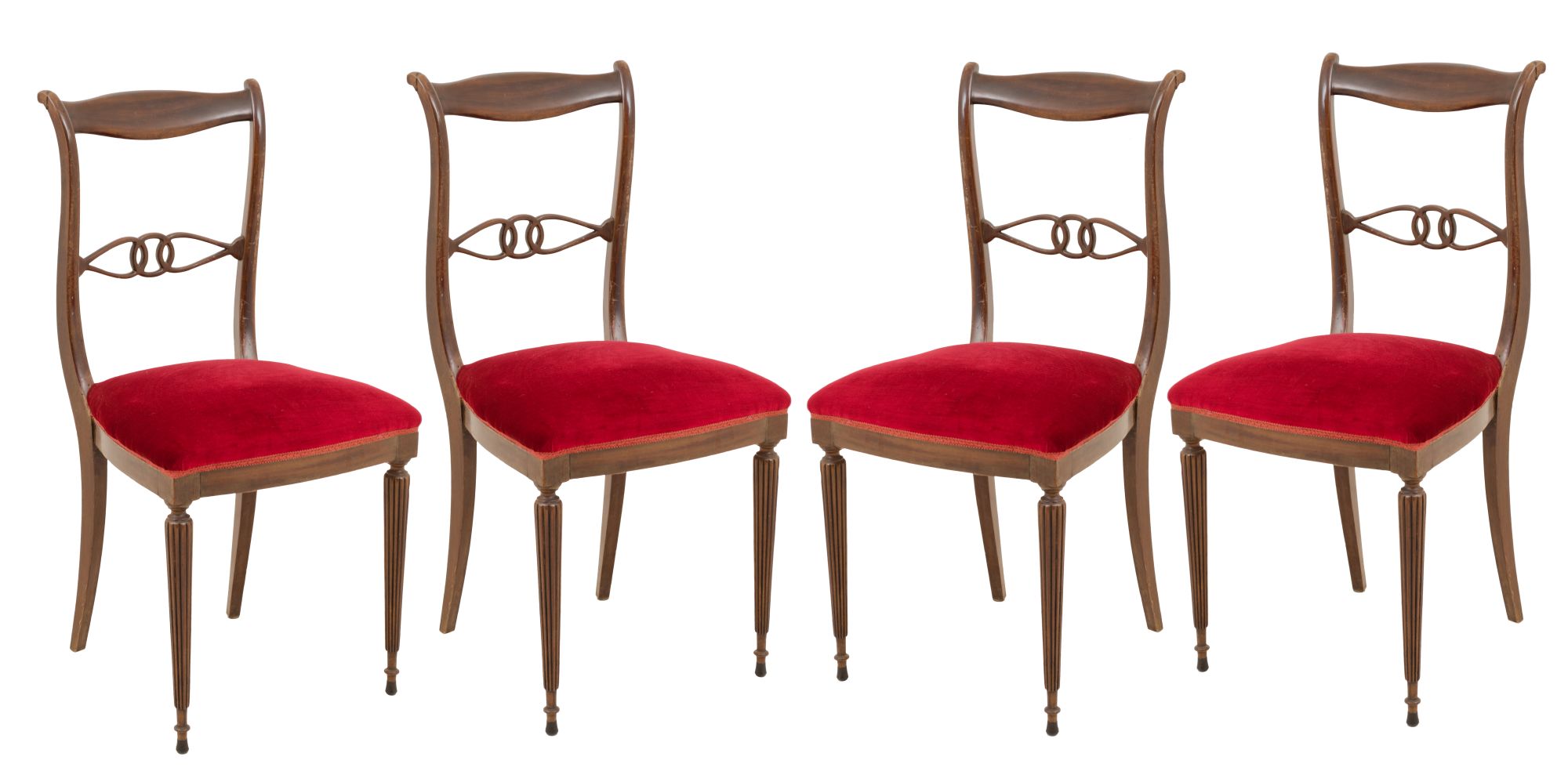 OTTO SEDIE stile Chippendale in mogano (seduta h cm 51). Primi '900 Misure: h cm 92