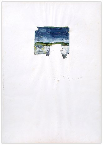 MARIO SCHIFANO 1934 – 1998 Senza titolo Smalto e collage su cartoncino 100 x 70. Firma al c.; sul margine a s. dedica e firma. Prov.: - Studio dell’artista.- Galleria Il Centro, Napoli.