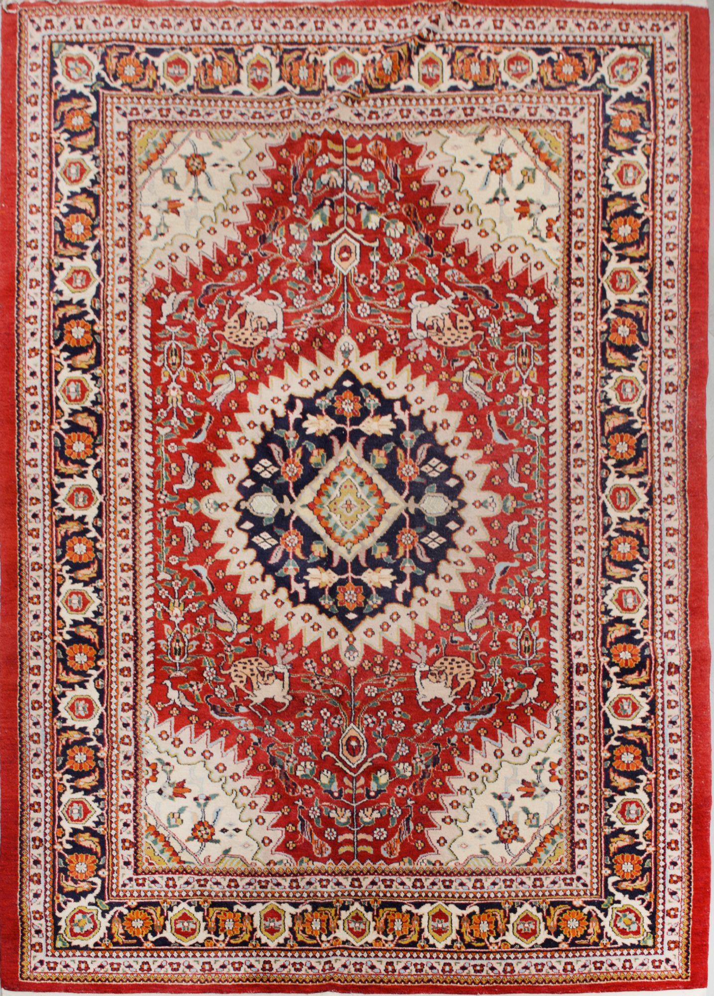 TAPPETO Agra, trama e ordito in cotone, vello in lana. India XX secolo Misure: cm 160 x 228