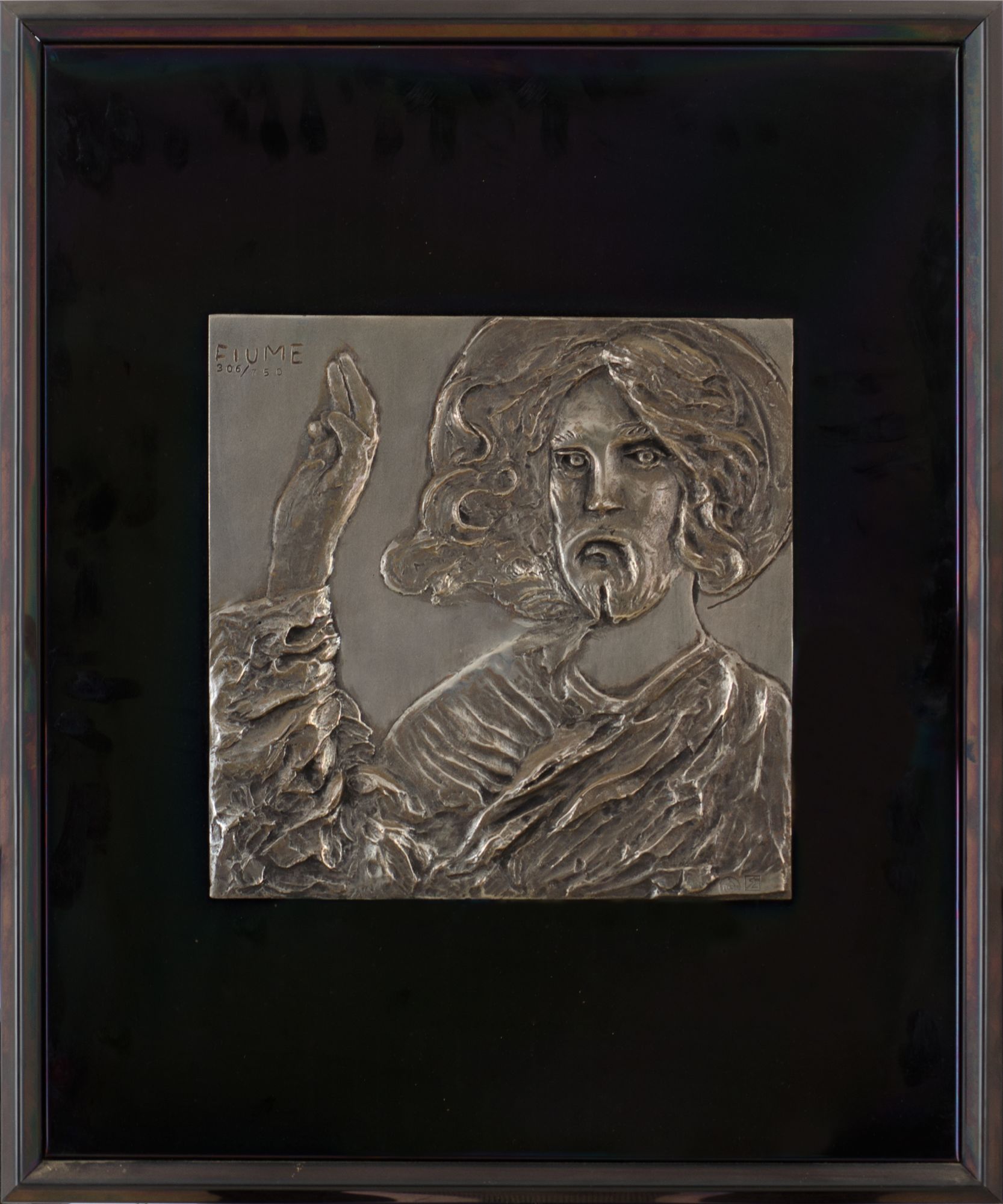 SALVATORE FIUME (Comiso (Rg) 1915 - Milano 1997) BASSORILIEVO in lamina d'acciaio, fusione a cera persa "Christus Vincit", esemplare 306/750 (con certificato di autenticita' e provenienza Sanzanobi). Misure: cm 29 x 29
