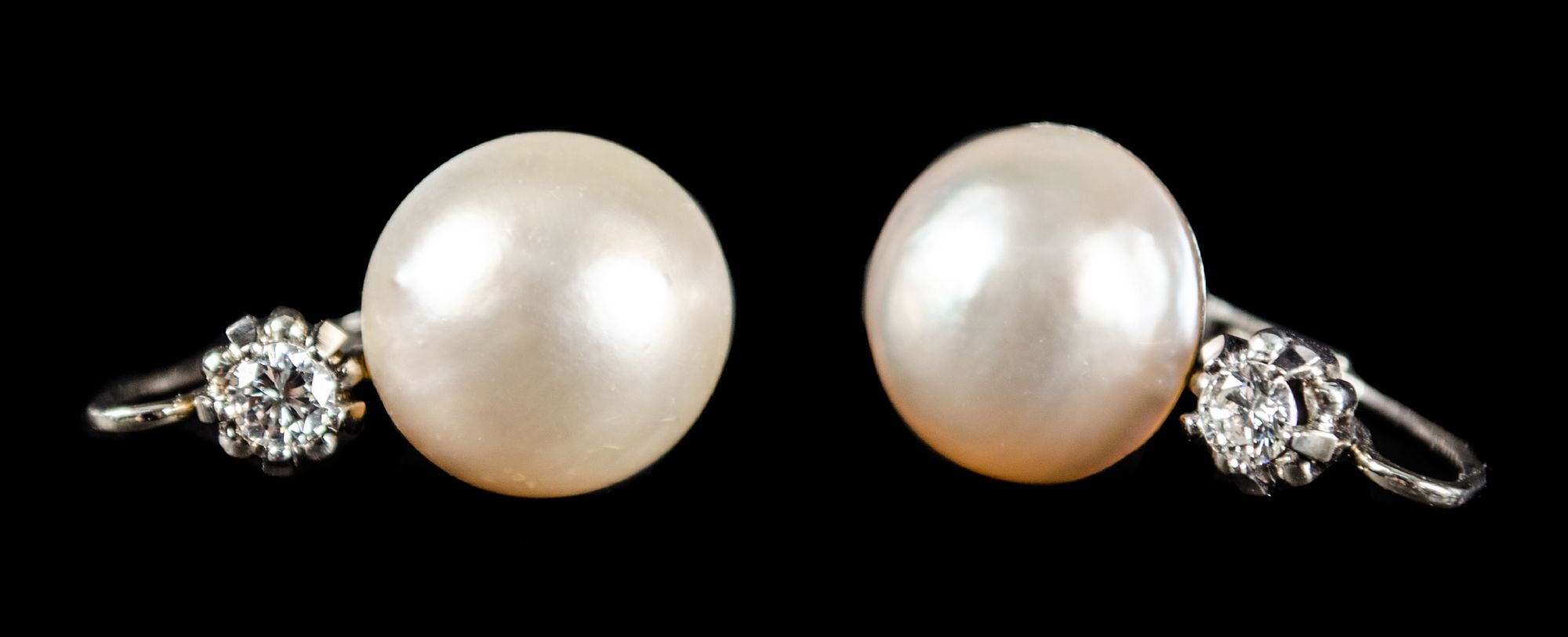 Lotto 853 | ORECCHINI in oro bianco 18 Kt. con diamanti taglio brillante e perle mabe'...