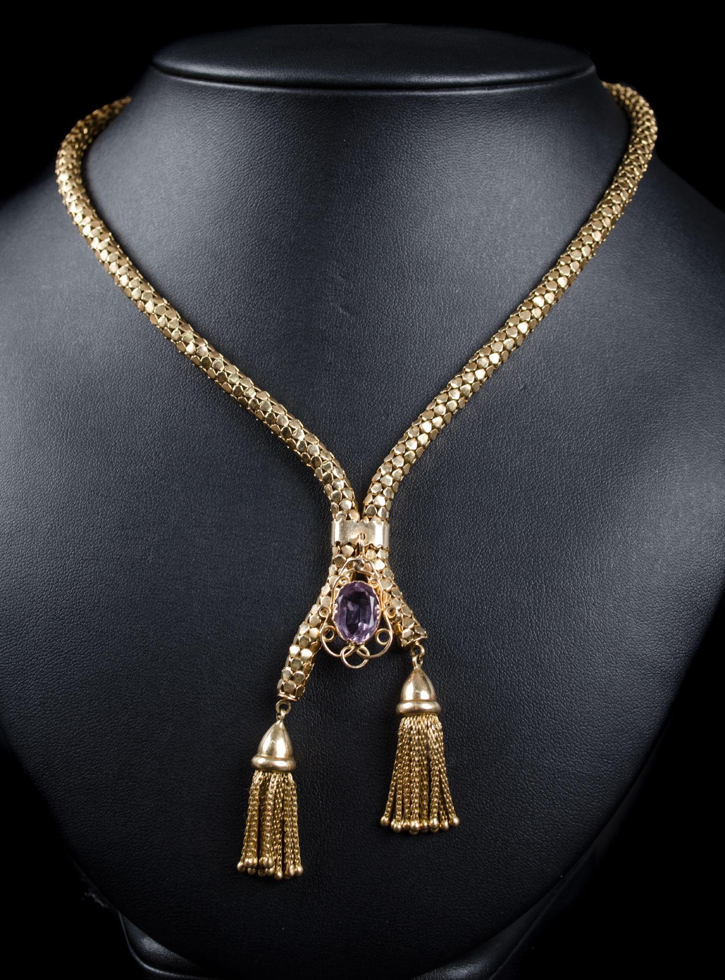 COLLIER semirigido a coda di topo in oro giallo 18 Kt. con pietra colore (g. 51).