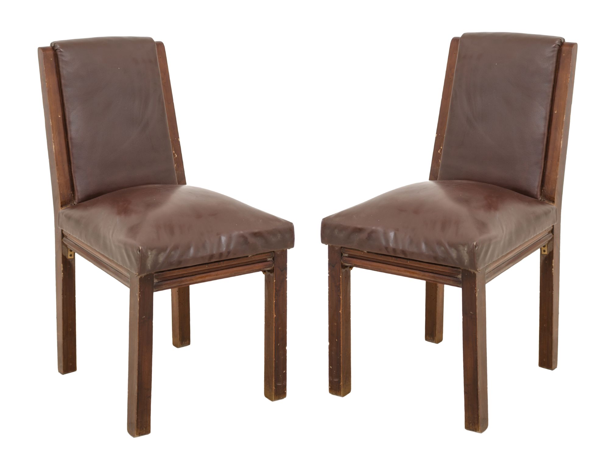 Lotto 919 | COPPIA SEDIE deco' in noce e vilpelle (seduta h cm 50). Meta' '900 Misure: h...