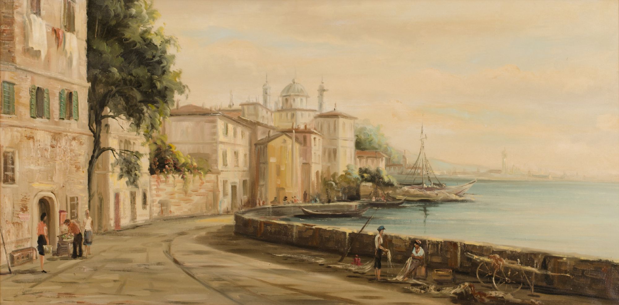 Lotto 930 | OLIO su tela "veduta di porto con pescatori". XX secolo Misure: cm 60 x 120