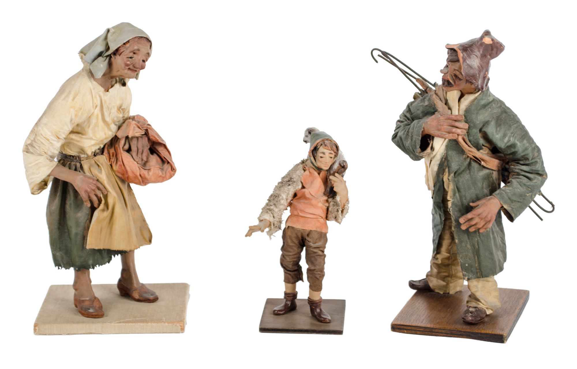 SANGIULIANO TRE SCULTURE da presepe in cartapesta e terracotta (difetti e...
