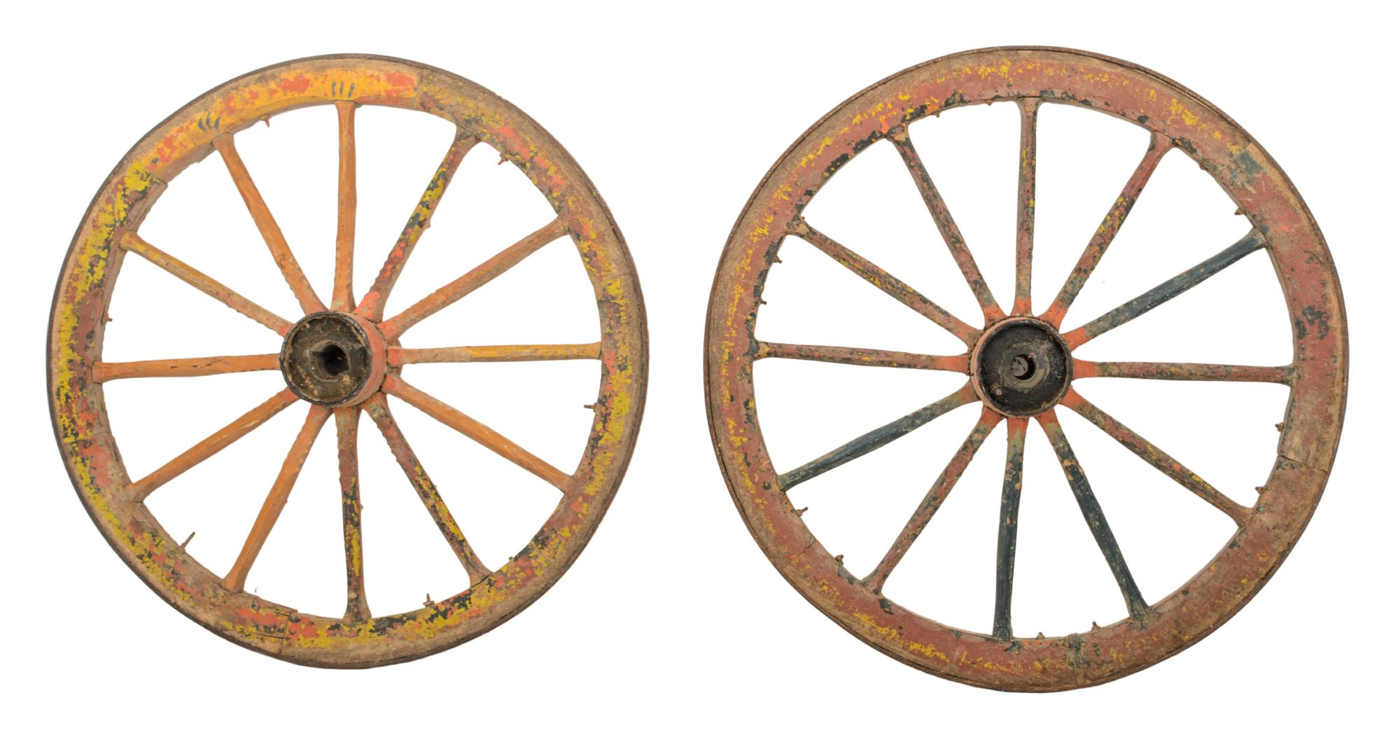 COPPIA RUOTE di carretto in legno e ferro. Sicilia primi '900 Misure: diametro cm 128