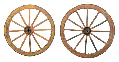 COPPIA RUOTE di carretto in legno e ferro. Sicilia primi '900 Misure:...