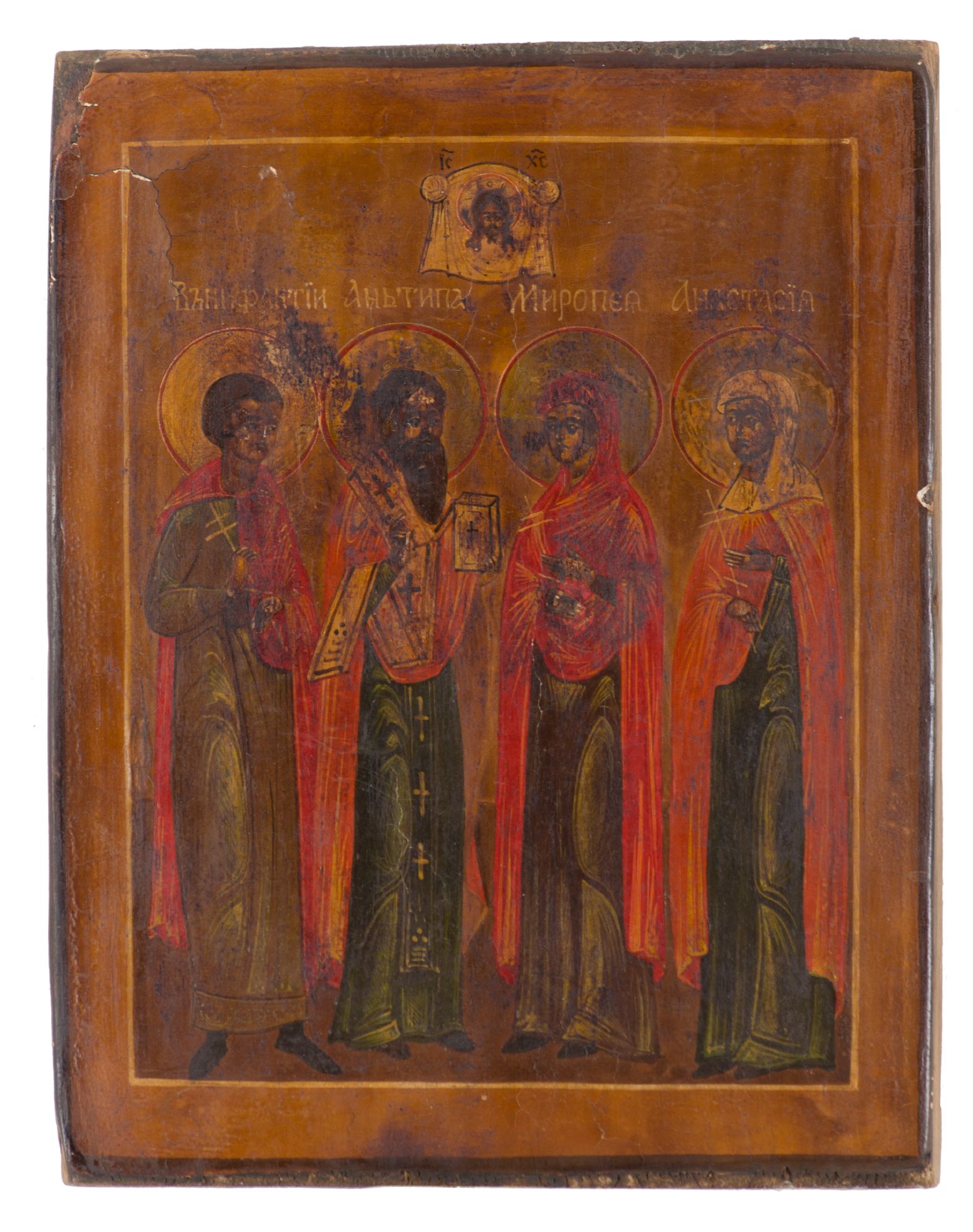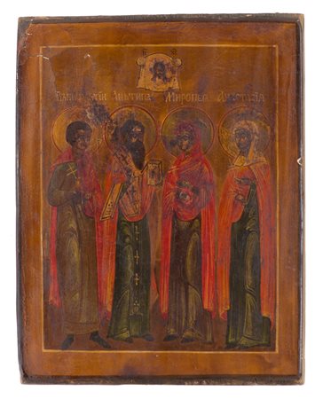 ICONA dipinta a mano "Santi". Russia XIX secolo Misure: cm 22 x 17