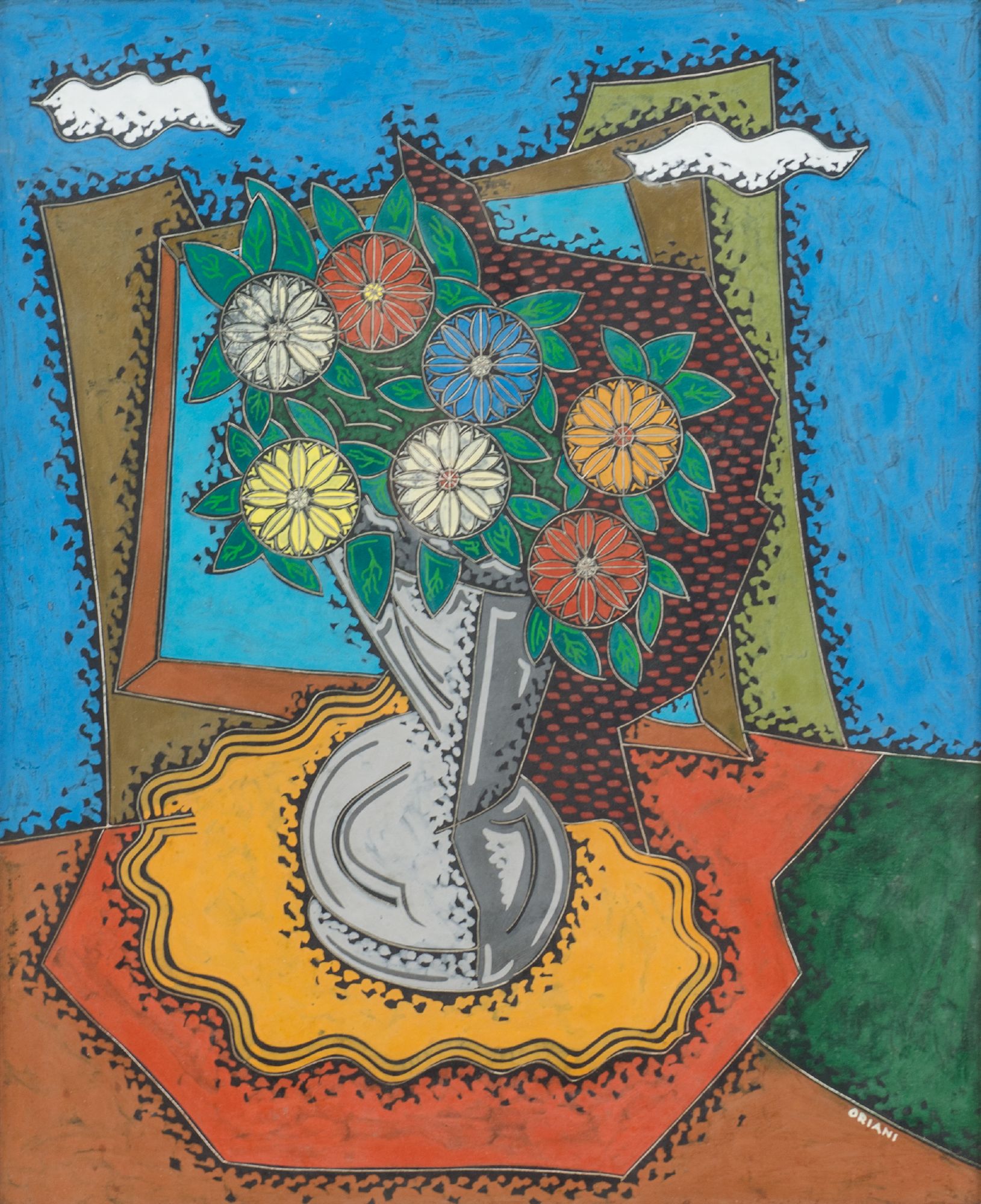 PIPPO ORIANI (Torino 1909 - Roma 1972) ENCAUSTO E GRAFFITO su cartone gessato firmato in basso a destra (pubblicato a pag. 252 del catalogo generale Pippo Oriani, Edizioni Centro d'Arte Mercurio Milano con repertorio n. OP234). Anni 60 - 70 Misure: cm 60 x 50