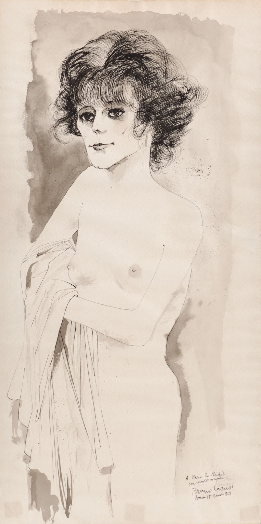 BRUNO CARUSO (Palermo 1927) TECNICA mista "nudo femminile". Misure: cm 58 x 29