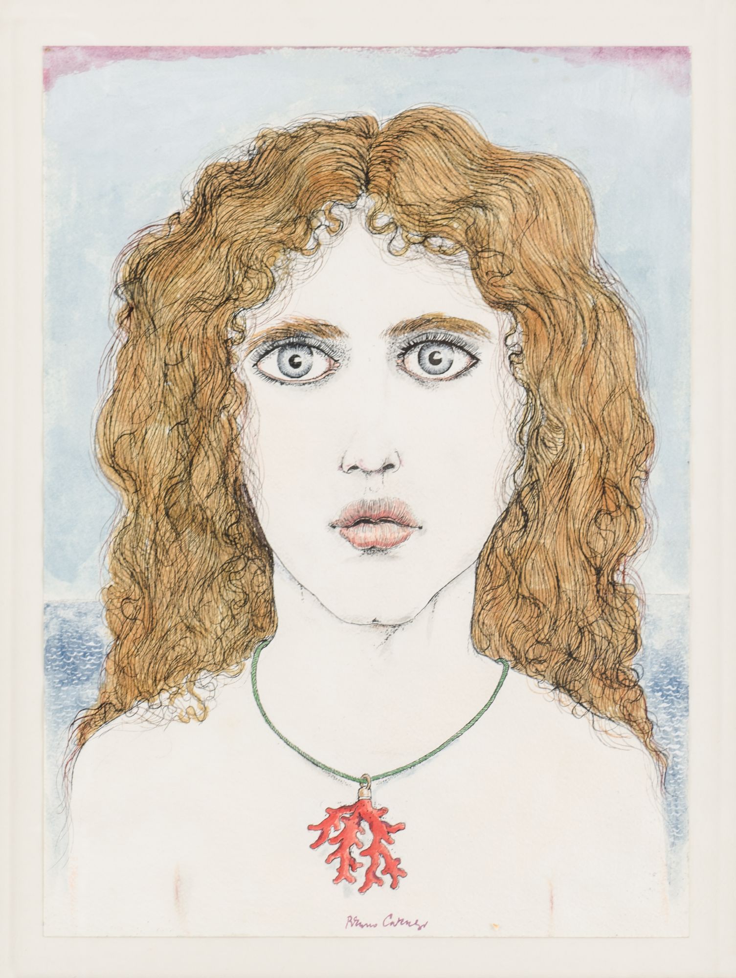 BRUNO CARUSO (Palermo 1928) TECNICA mista su cartoncino "ritratto femminile con pendente in corallo", firmato in basso al centro. Misure: cm 70 x 53
