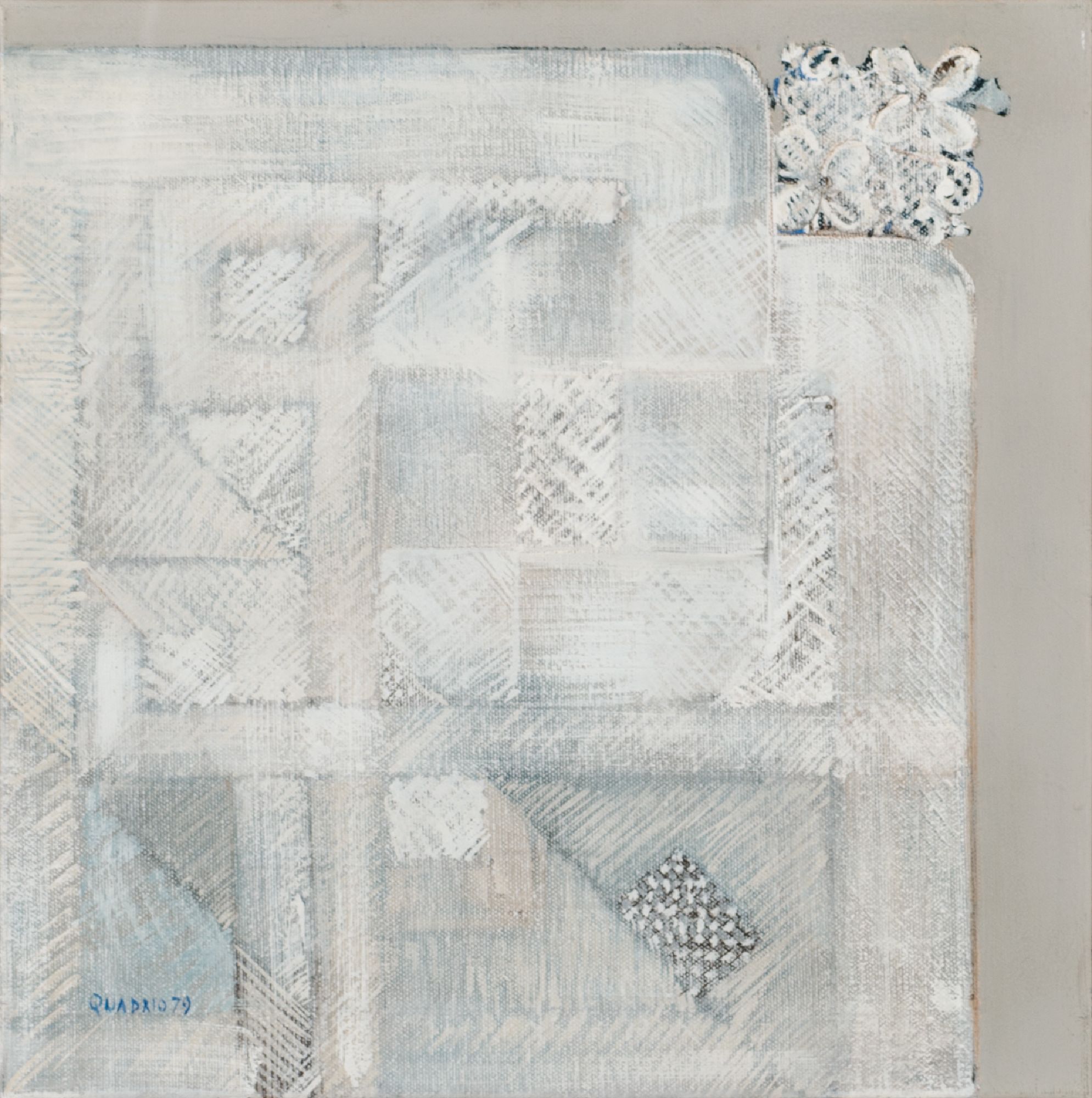 GUIDO QUADRIO (Palermo 1938) OLIO su tela "incroci di figure", firmato in basso a sinistra. Datato 1979 Misure: cm 40 x 40