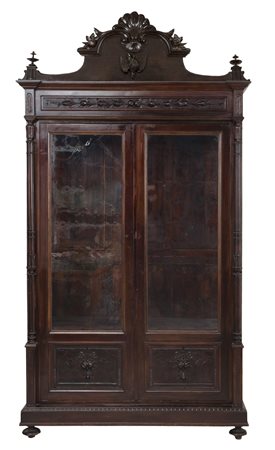 VETRINA stile Umbertino in noce a due ante. Sicilia fine '800 Misure: cm 145 x 59 x h 268