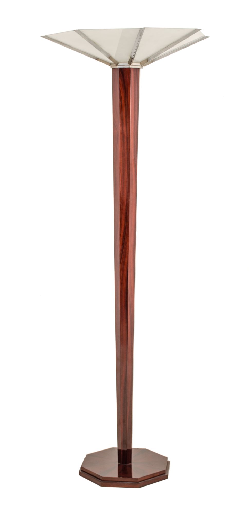 PIANTANA deco' in palissandro con lume in metallo e vetro. Meta' '900 Misure: cm 74 x 74 x h 196
