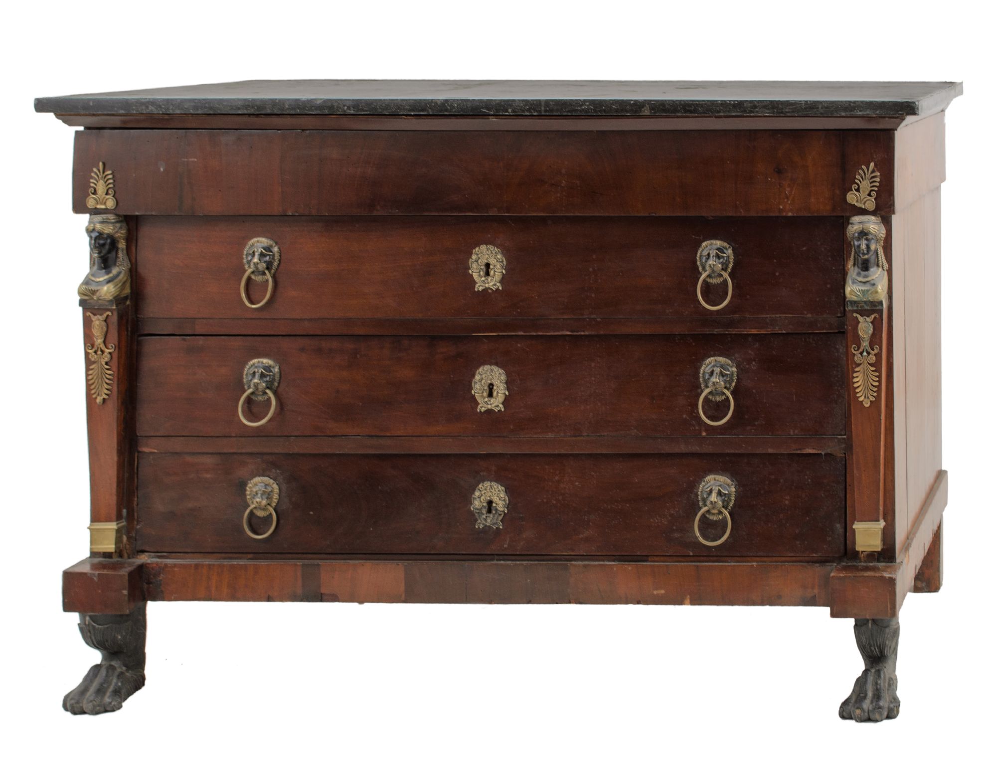 CASSETTONE Impero Retour d'Egypt in mogano a tre cassetti. Toscana primi '800 Misure: cm 130 x 58 x h 83