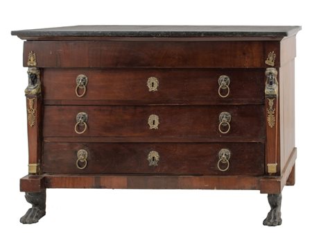 CASSETTONE Impero Retour d'Egypt in mogano a tre cassetti. Toscana primi '800...