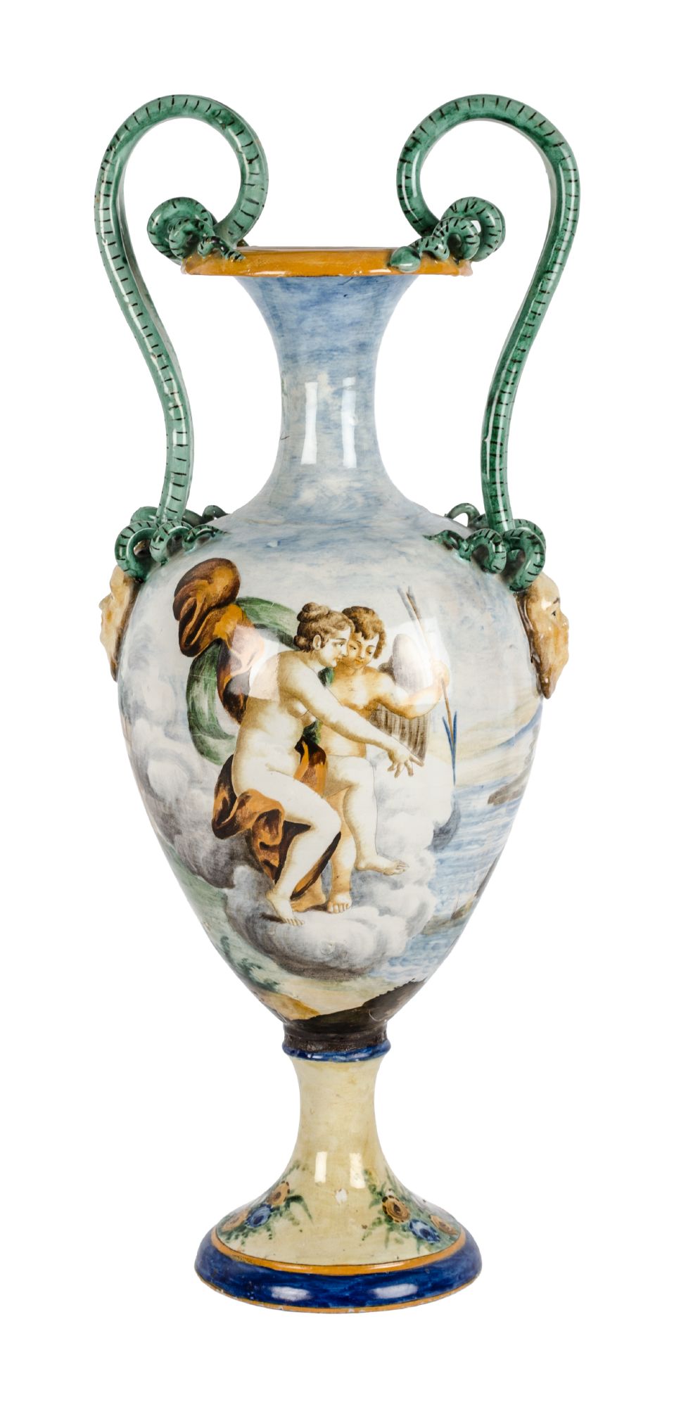 ANFORA in ceramica decorata a mano. Castelli primi '900 Misure: h cm 61