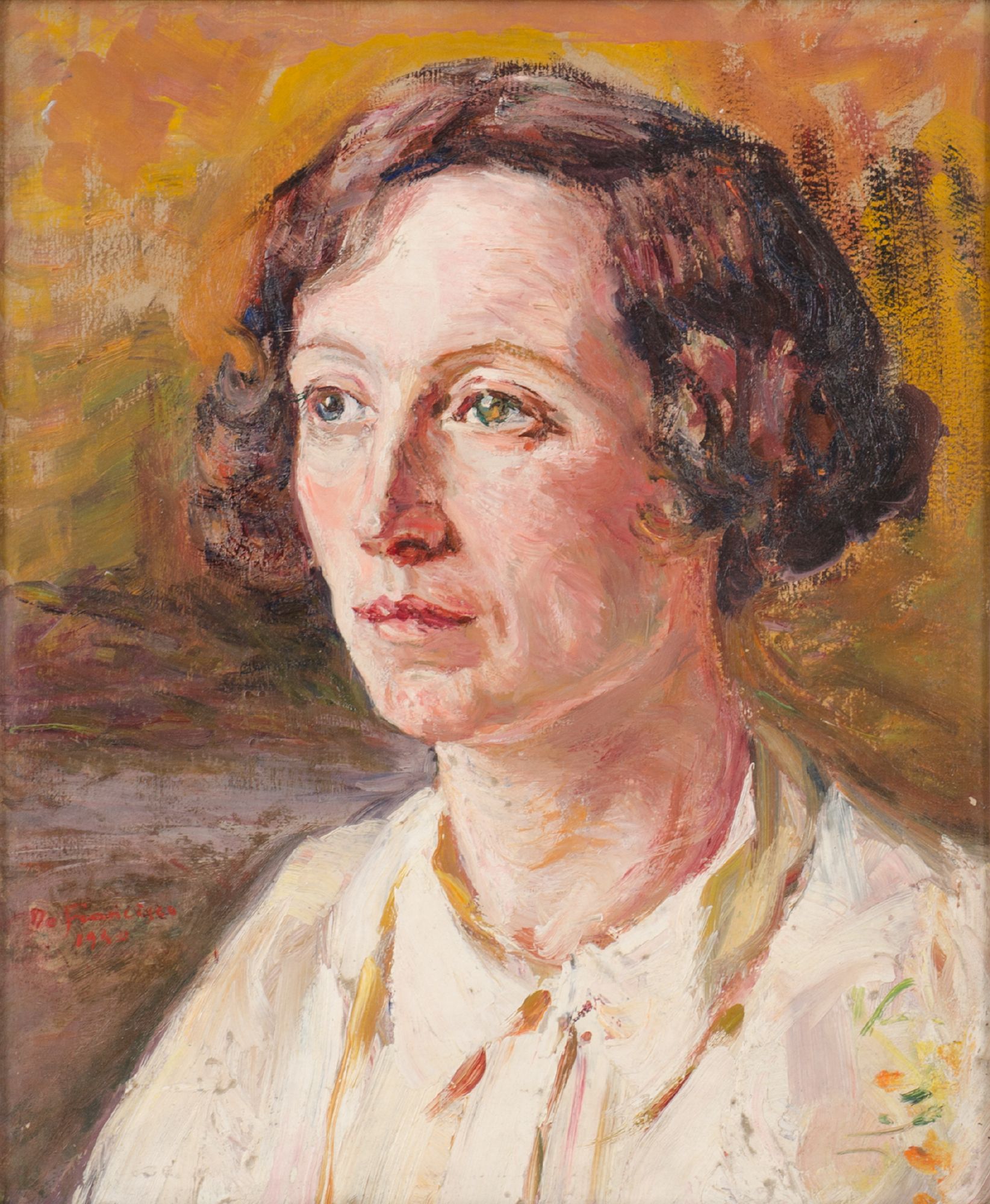 PIETRO DE FRANCISCO (Palermo 1873 - Mentone 1969) OLIO su cartone "ritratto di M.me Drach", firmato in basso a sinistra e sul retro. Datato 1940 Misure: cm 45 x 37