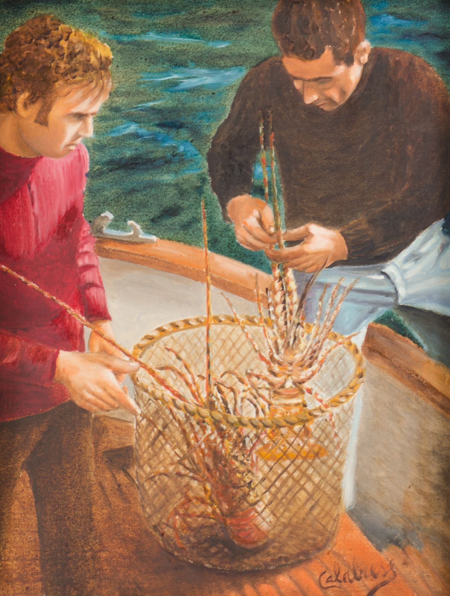 ANTONIO CALABRESE (Nardo' 1947) OLIO su tela "pesca dell'aragosta". Misure: cm 61 x 47