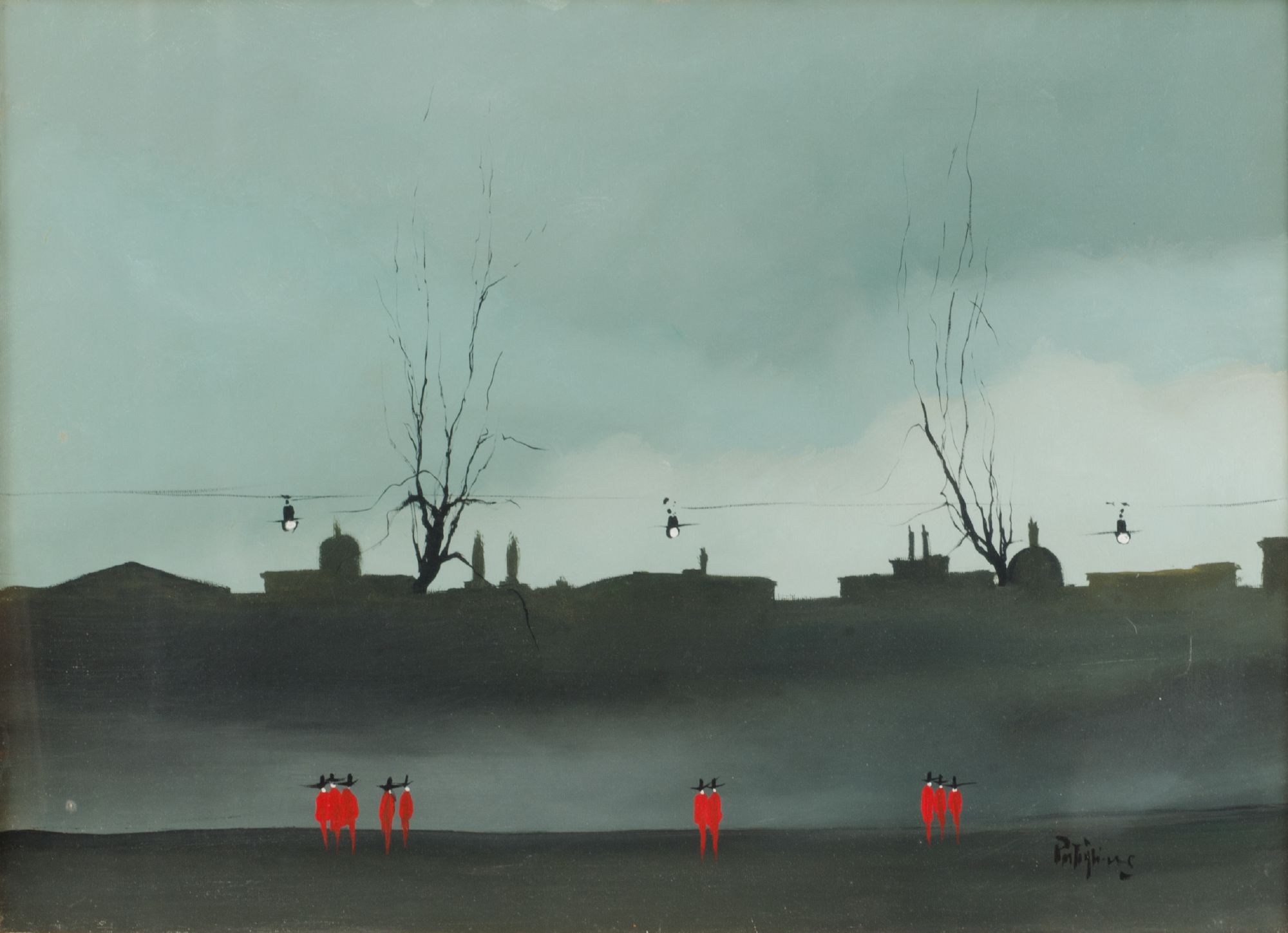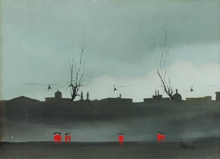V. POSTIGLIONE OLIO su tela "preti notturni". XX secolo Misure: cm 50 x 70