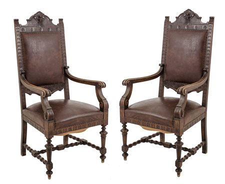 COPPIA POLTRONE stile Umbertino in noce. Sicilia fine '800 Misure: cm 62 x 70 x h 134