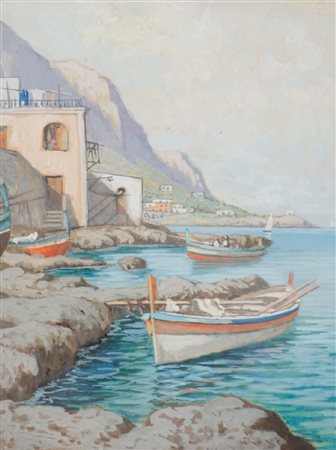 COPPIA ACQUARELLI "paesaggi costieri con barche". XX secolo Misure: cm 22 x 17