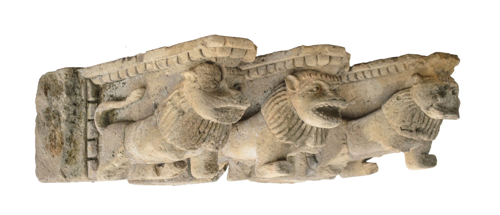 TRE SOTTO BALCONI in pietra ragusana raffiguranti "Gargoyles" (rotture e mancanze). Sicilia XVII secolo Misure: cm 110 x 27 x h 40