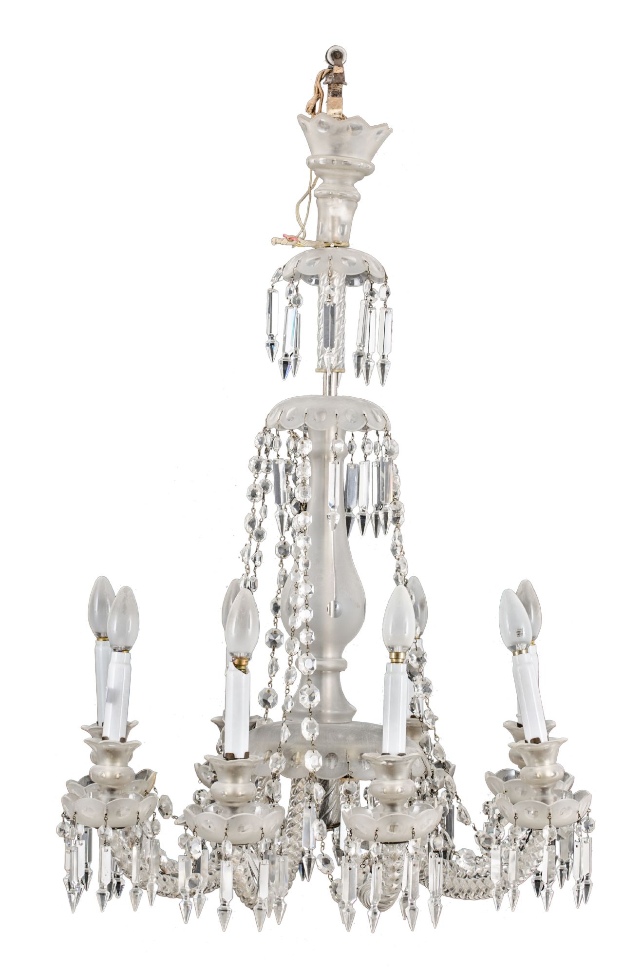 LAMPADARIO ad otto fiamme in vetro con brindoli (rotture). Sicilia XIX secolo...