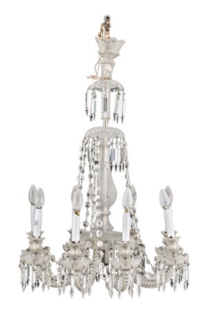 LAMPADARIO ad otto fiamme in vetro con brindoli (rotture). Sicilia XIX secolo Misure: h cm 90