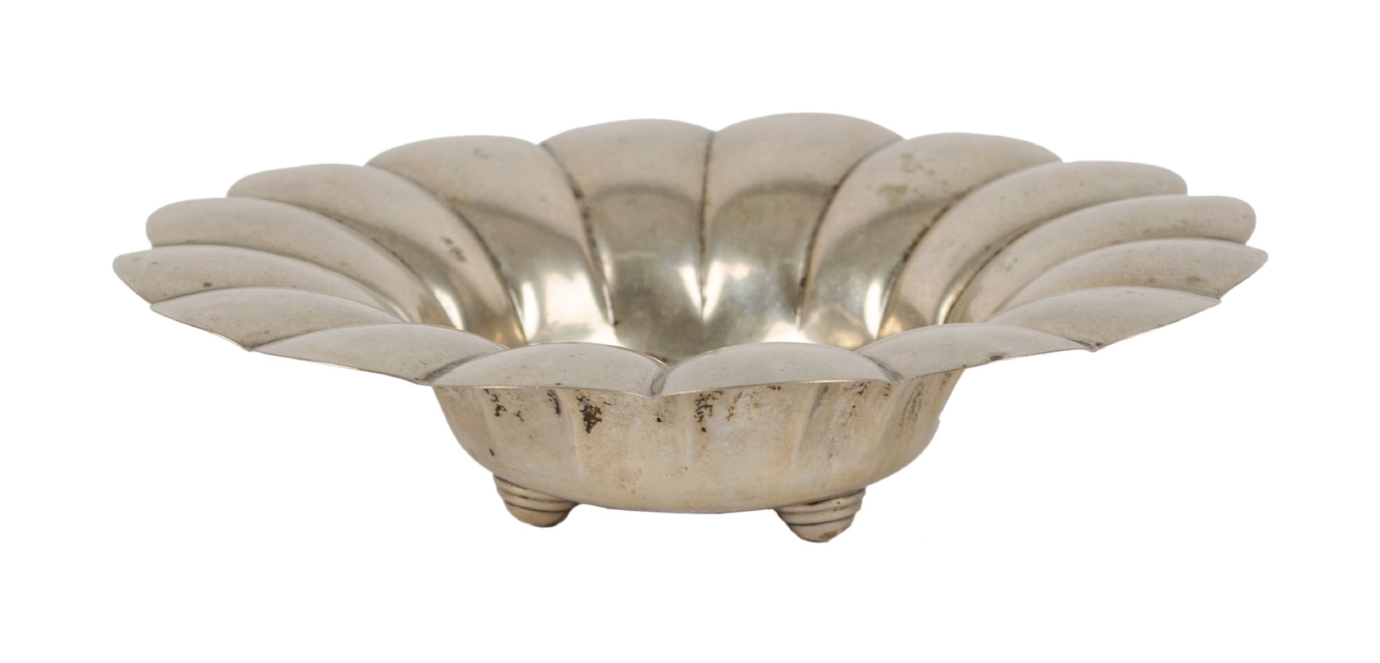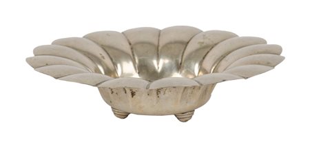 CENTROTAVOLA in argento sbalzato (g. 232). XX secolo Misure: diametro cm 23 x h 6